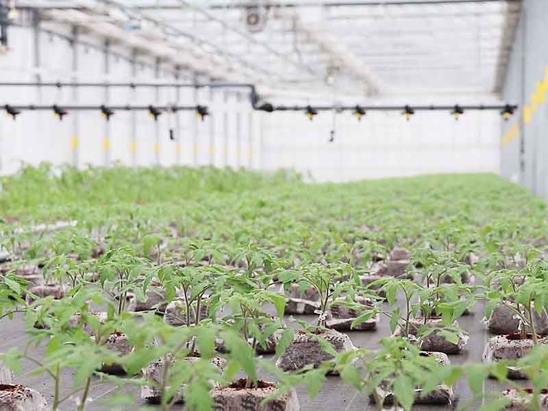 | 設備概況 | 自然換気型温室・循環扇・温風暖房・ボトムヒーティング・補光ランプ・自走灌水機・底面給水ベンチ・発芽室・養生庫・ナス科半自動接木ロボット・ドラム式播種ライン |